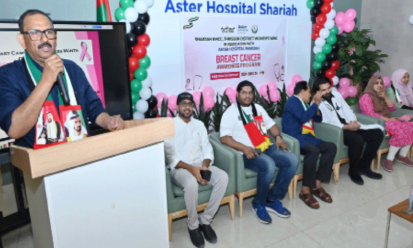 ഷാർജ: യു.എ.ഇ ദേശീയ ദിനാഘോഷത്തിന്റെ ഭാഗമായി ആസ്റ്റർ ഹോസ്പിറ്റലുമായി സഹകരിച്ച് ഷാർജ കെ.എം.സി.സി തൃശൂർ ജില്ല കമ്മിറ്റി വനിത വിഭാഗം സൗജന്യ മെഡിക്കൽ ക്യാമ്പും സ്തനാർബുദ ബോധവത്കരണ ക്ലാസും സംഘടിപ്പിച്ചു. ഷാർജ ആസ്റ്റർ ഹോസ്പിറ്റൽ അങ്കണത്തൽ നടന്ന പരിപാടി ഷാർജ കെ.എം.സി.സി തൃശൂർ ജില്ല കമ്മിറ്റി പ്രസിഡന്റ് അബ്ദുൽ ഖാദർ ചക്കനാത്ത് ഉദ്ഘാടനം ചെയ്തു. വനിത വിഭാഗം പ്രസിഡന്റ് സജ്ന ഉമ്മർ അധ്യക്ഷത വഹിച്ചു.ഡോ. അസ്ലം സലീം, ഡോ. ആയിഷ സലാം, സിറാജ് മുസ്തഫ എന്നിവർ മുഖ്യാതിഥികളായിരുന്നു.ത്വയ്യിബ് ചേറ്റുവ, മുഹ്സിൻ, എൽദോ എന്നിവർ സംസാരിച്ചു.ആസ്റ്റർ ഹോസ്പിറ്റലിനുള്ള ആദരം അബ്ദുൽ വഹാബ് സമ്മാനിച്ചു. വനിത വിഭാഗം വാർഷികത്തിന്റെ ഭാഗമായ കേക്ക് മുറിച്ചു. ജനറൽ സെക്രട്ടറി ഹസീന റഫീഖ് സ്വാഗതവും ട്രഷറർ ഷംന നിസാം നന്ദിയും പറഞ്ഞു.